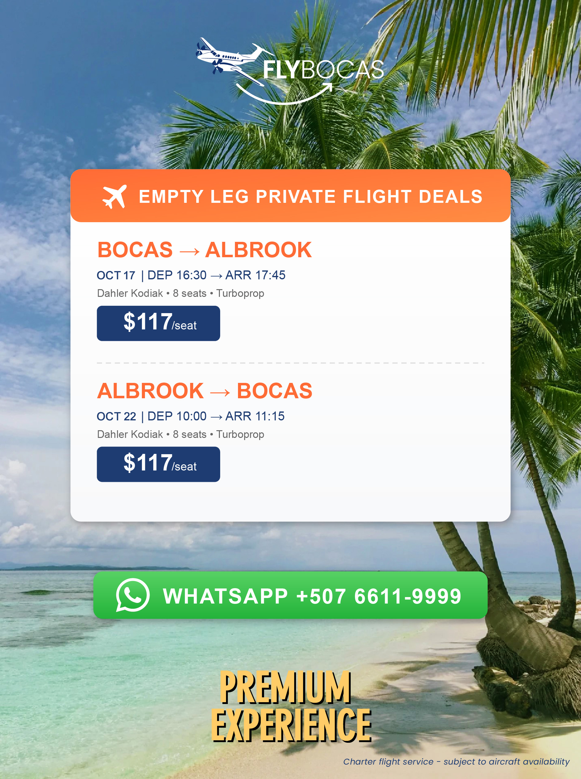 Be the first to know of new Empty Leg availability, and have first opportunity to grab these special discounted flights.